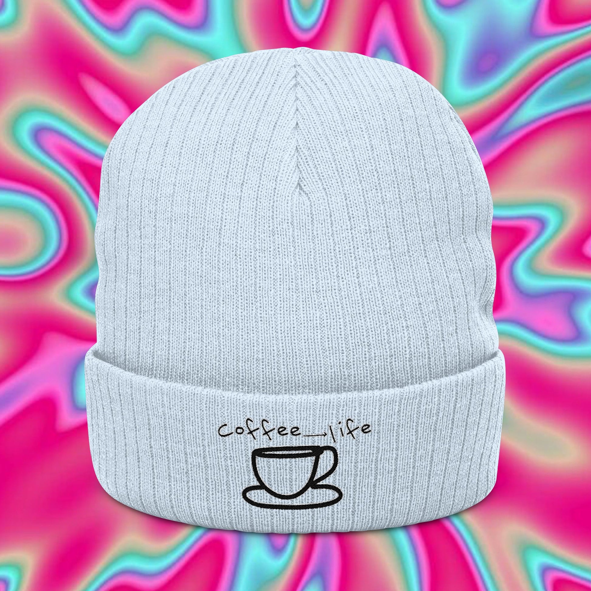 Coffee Is Life Ribbed Knit Beanie – Embroidered Mug Design
