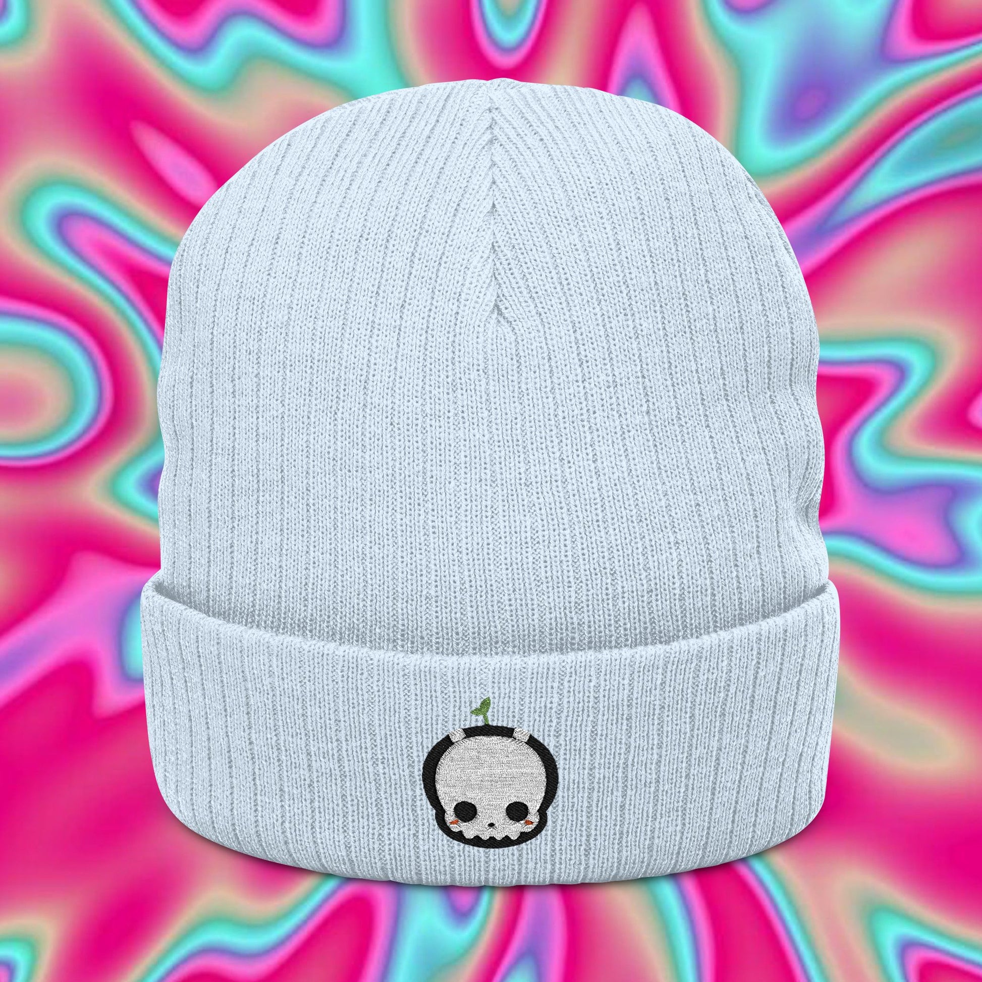 Ghost Sprout Ribbed Knit Beanie — Embroidered